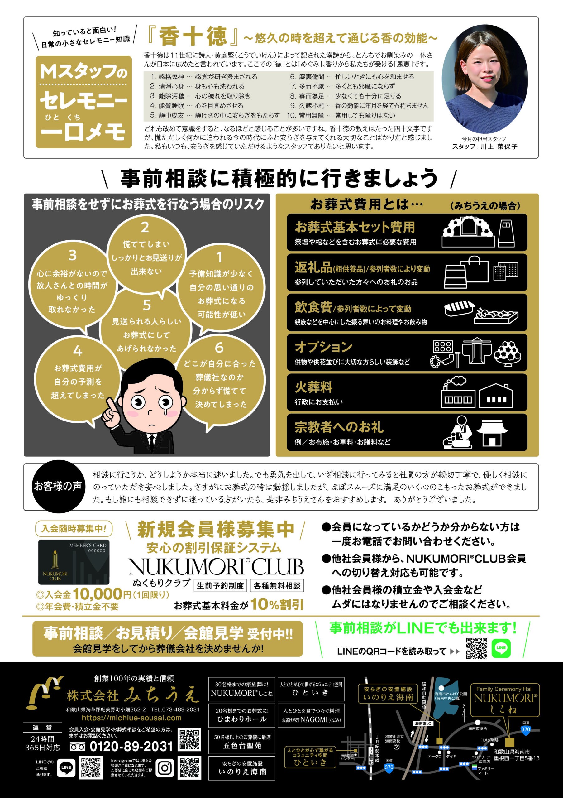 スタッフ一口メモは先月号に引き続きお香「香十徳」について川上がご案内させて頂きます。