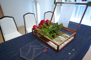 お母様の想い出を語る娘様の思いを聞きながらご提案させて頂いたのがジーンズの棺でした。 ジーンズ姿のお母様を写真で見た時、何か思い出に残る一場面をお葬式でお手伝いできれば良いなと思いました。 お母様のご冥福をお祈り致します。